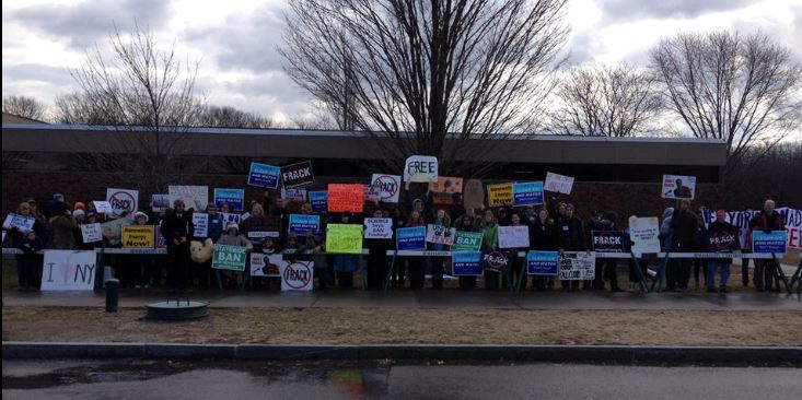 It was cold Saturday morning. I know because I, and a 100 other people from the Southern Tier, stood outside the Binghamton University Event Center to meet and greet Governor Cuomo and let him know that we will not let one fracking gas well be drilled in New York. Just like Exxon CEO Rex Tillerson we know that the noisy, noxious, toxic, radioactive, heavy industrial process of fracking for gas, and the leaking pipelines, and exploding generators do not belong next to people’s homes and schools.